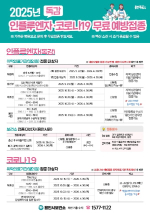 Á¢Á¾Àº ¿¬·É´ëº°·Î 75¼¼ ÀÌ»óÀº 10¿ù 15ÀϺÎÅÍ, 70~74¼¼´Â 10¿ù 20ÀϺÎÅÍ, 65~69¼¼´Â 10¿ù 22ÀϺÎÅÍ ¼øÂ÷ÀûÀ¸·Î Á¢Á¾À» ½ÃÀÛÇÑ´Ù. 65¼¼ ÀÌ»óÀ̸é ÀÎÇ÷翣ÀÚ ¹é½Å°ú µ¿½Ã Á¢Á¾À» ¹ÞÀ» ¼ö ÀÖ´Ù.