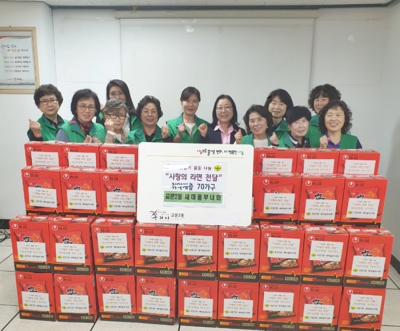 [DBSº¸µµ±¹]=±¸¸®½Ã ±³¹®2µ¿ »õ¸¶À»ºÎ³àȸ(ȸÀå À̹ξÆ)´Â Áö³ 10¿ù 14ÀÏ, ¾î·Á¿î ÀÌ¿ôµé¿¡°Ô Àü´ÞÇØ ´Þ¶ó¸ç ¶ó¸é 70¹Ú½º(100¸¸ ¿ø »ó´ç) ¸¦ ±³¹®2µ¿ ÇàÁ¤º¹Áö¼¾ÅÍ(µ¿Àå ¼Çâ¶û)¿¡ ±âŹÇß´Ù.