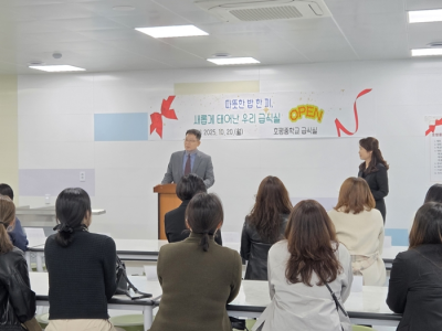 È£ÆòÁßÇб³´Â ±Þ½Ä½Ç ¿Ï°øÀ» ±â³äÇØ 2025³â 10¿ù 20ÀÏ °³°ü½ÄÀ» °³ÃÖÇß´Ù. ÀÌ ÀÚ¸®¿¡´Â Çлý ´ëÇ¥, Çкθð, Çб³ ¿î¿µÀ§¿øµéÀÌ Âü¼®ÇØ ÄèÀûÇÑ ±Þ½Ä ȯ°æ Á¶¼º°ú Çб³ Á÷¿µ ±Þ½Ä ½ÃÀÛÀ» ÃàÇÏÇß´Ù.
