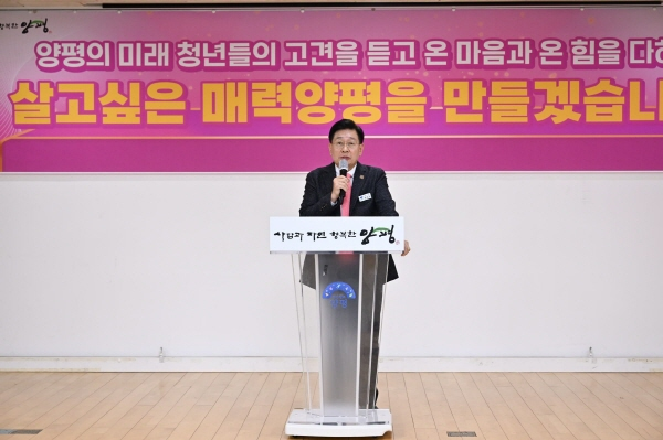 ÀüÁø¼± ¾çÆò±º¼ö´Â ¡°Ã»³âÀº Áö¿ª»çȸÀÇ È°·ÂÀ» À̲ø¾î°¡´Â Á᫐ µ¿·ÂÀÌÀÚ ¹Ì·¡ ¾çÆòÀÇ Èñ¸Á¡±À̶ó¸ç ¡°ÀÏÀÚ¸®, ÁÖ°Å, º¹Áö, ¹®È µî û³âÀÇ »î Àü¹Ý¿¡ °ÉÄ£ Á¤Ã¥ ±â¹ÝÀ» °ÈÇØ û³âÀÌ ¸Ó¹°°í ¼ºÀåÇÒ ¼ö Àִ û³âģȵµ½Ã ¾çÆòÀ» ½ÇÇöÇØ ³ª°¡°Ú´Ù¡±°í ¸»Çß´Ù