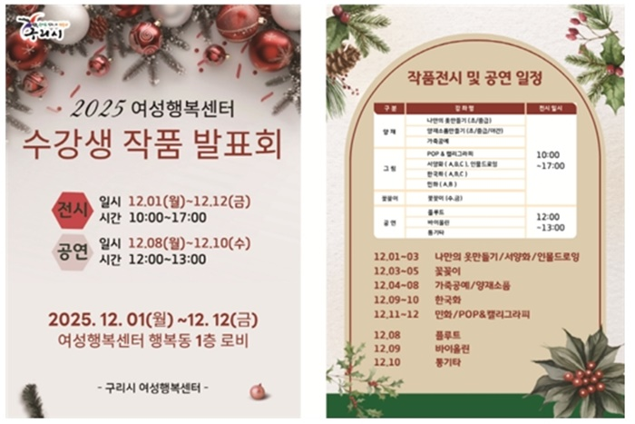 ÇÑÆí, ±¸¸®½Ã ¿©¼ºÇູ¼¾ÅÍ´Â 2025³â¿¡ 5°³ ±³À°°úÁ¤, ÃÑ 72°³ °Á¸¦ ½Ç½ÃÇØ 2,754¸íÀÌ ±³À°À» ¼ö·áÇßÀ¸¸ç, 2026³â 1±â ¼ö°»ý ¸ðÁýÀº 12¿ù 15ÀϺÎÅÍ 28ÀϱîÁö ÁøÇàµÉ ¿¹Á¤ÀÌ´Ù. ÀÚ¼¼ÇÑ »çÇ×Àº ¿©¼ºÇູ¼¾ÅÍ È¨ÆäÀÌÁö¿¡¼ È®ÀÎÇÒ ¼ö ÀÖ´Ù.