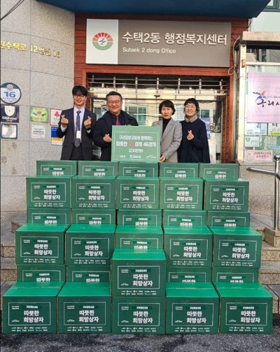 [DBSº¸µµ±¹]=±¸¸®½Ã ¼öÅÃ2µ¿(µ¿Àå ¹ÚÁ¤Èñ)Àº Áö³ 12¿ù 18ÀÏ Áö¿ª»çȸ ÀÌ¿ô»ç¶û ½ÇõÀÇ Çϳª·Î ±¸¸®Áß¾Ó±³È¸(¸ñ»ç Àå¿µÈÆ)¿Í ±¹Á¦±¸È£´Üü ¡®±â¾Æ´ëÃ¥¡¯ÀÌ ÇÔ²² ¸¶·ÃÇÑ Èñ¸Á »óÀÚ 46¹Ú½º¸¦ Àü´Þ¹Þ¾Ò´Ù.