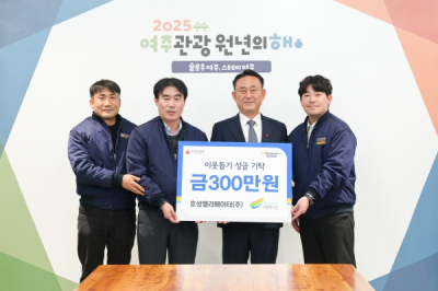 [DBSº¸µµ±¹]=Áö³ 22ÀÏ È£¼º¿¤¸®º£ÀÌÅÍ(ÁÖ)(´ëÇ¥ ¹Ú°ü¿ì)¿¡¼´Â ¿©ÁÖ½Ã(½ÃÀå ÀÌÃæ¿ì)¸¦ ¹æ¹®ÇÏ¿© °ü³» Àú¼ÒµæÃþÀ» À§ÇÑ ÀÌ¿ôµ½±â ¼º±ÝÀ¸·Î 300¸¸¿øÀ» ±âŹÇß´Ù.