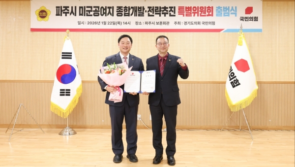 À̳¯ °æ±â ÆÄÁֽà º¸ÈÆÈ¸°ü¿¡¼ ¿¸° ¡®°æ±âµµÀÇȸ ±¹¹ÎÀÇÈû ÆÄÁֽà ¹Ì±º°ø¿©Áö Á¾ÇÕ°³¹ß¡¤Àü·«ÃßÁø Ưº°À§¿øÈ¸¡¯ Ãâ¹ü½Ä¿¡´Â ¹éÇöÁ¾ ´ëÇ¥ÀÇ¿ø°ú °íÁØÈ£ Ưº°À§¿øÀåÀ» ºñ·ÔÇØ ±¹¹ÎÀÇÈû ¼Ò¼Ó µµÀÇ¿øµéÀÌ ´Ù¼ö Âü¼®Çß´Ù.