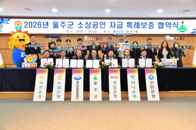 ¿ïÁÖ±ºÀº À̳¯ ±ºÃ» ¹®¼öȦ¿¡¼ ¿ï»ê½Å¿ëº¸ÁõÀç´Ü°ú °æ³²ÀºÇà, ³óÇùÀºÇà, ÇϳªÀºÇà, ±¹¹ÎÀºÇà, ½ÅÇÑÀºÇà µî 5°³ ±ÝÀ¶±â°üÀÌ Âü¿©ÇÑ °¡¿îµ¥ ¡®2026³â ¼Ò»ó°øÀÎ ÀÚ±ÝÆ¯·Êº¸Áõ Áö¿ø ¾÷¹«Çù¾à¡¯À» ü°áÇß´Ù.