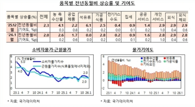 ´Ù¸¸ »ç°ú¡¤Á¶±â µî ¼º¼öǰÀ» Áß½ÉÀ¸·Î ¸Ô°Å¸® °¡°ÝÀº ¿©ÀüÈ÷ ³ôÀº È帧À» À̾ ü°¨¹°°¡ ºÎ´ãÀº ³²¾Æ ÀÖ´Ù´Â Æò°¡´Ù.±¹°¡µ¥ÀÌÅÍó°¡ 3ÀÏ ¹ßÇ¥ÇÑ ¡®2026³â 1¿ù ¼ÒºñÀÚ¹°°¡ µ¿Ç⡯¿¡ µû¸£¸é 1¿ù ¼ÒºñÀÚ¹°°¡Áö¼ö´Â 118.03À¸·Î Àü³â µ¿¿ù ´ëºñ 2.0% »ó½ÂÇß´Ù.
