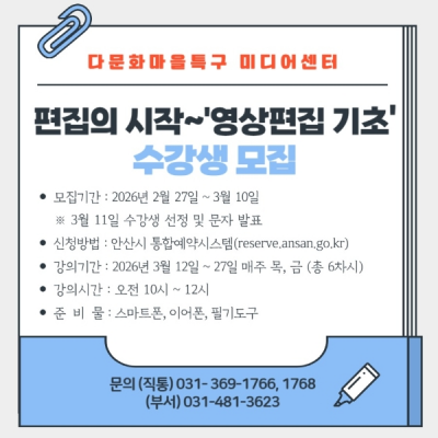 [DBSº¸µµ±¹]=¾È»ê½Ã ¿Ü±¹ÀÎÁÖ¹ÎÁö¿øº»ºÎ´Â ÀÌ´ÞºÎÅÍ ´Ù¹®È¸¶À»Æ¯±¸ ¹Ìµð¾î¼¾ÅÍ¿¡¼ »ó¹Ý±â ¿µ»ó ÄÜÅÙÃ÷ Á¦ÀÛ ±³À°°úÁ¤À» ¿î¿µÇÑ´Ù°í 3ÀÏ ¹àÇû´Ù.