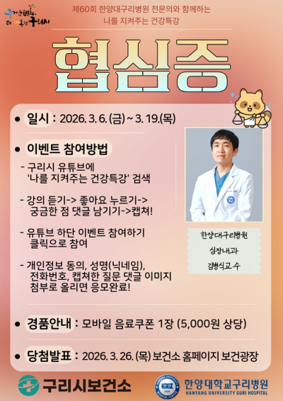 Ư°Àº¡®±¸¸®ºñÀü¡¯ ä³ÎÀ» ÅëÇØ ½ÃûÇÒ ¼ö ÀÖ´Ù. ½Ãû ÈÄ 6ÀϺÎÅÍ 19ÀϱîÁö ±Ã±ÝÇÑ »çÇ×À» ´ñ±Û·Î ³²±â¸é ¿ì¼öÁú¹® 3°ÇÀ» ¼±Á¤ÇØ ÇѾç´ë±¸¸®º´¿ø ½ÉÀå³»°ú ±èº´½Ä ±³¼ö°¡ Á÷Á¢ ´äº¯ÇÒ ¿¹Á¤ÀÌ´Ù.