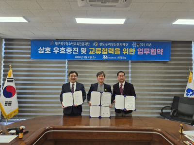 [DBSº¸µµ±¹]=ûµµ¿ì¸®Á¤½Å¹®ÈÀç´Ü(´ëÇ¥ÀÌ»ç ±âȼ)Àº Áö³ 3¿ù 4ÀÏ È¶ûÁ¤½ÅÀ» À̾´Â ûµµ½Åȶûdz·ù¸¶À»¿¡¼ (Àç)´ë±¸ºÏ±¸Ã»¼Ò³â±³À°ÁøÈïÀç´Ü(»óÀÓÀÌ»ç À̺¹¿ì), Çѱ¹Äڹ̵ðŸ¿î ¿î¿µÁÖü ¢ß¸®¿Â(´ëÇ¥ ±è¹Ì¼÷)°ú »óÈ£ ¿ìÈ£ ÁõÁø ¹× ±³·ù Çù·ÂÀ» À§ÇÑ ¾÷¹«Çù¾à(MOU)À» ü°áÇß´Ù.