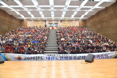 [DBSº¸µµ±¹]=´ëÇѳëÀÎȸ ¿ïÁÖ±ºÁöȸ(ÁöȸÀå Â÷µ¿Áø)°¡ 12ÀÏ ¿ïÁÖ±ºÃ» ¾ËÇÁ½ºÈ¦¿¡¼ À̼ø°É ±º¼ö¿Í ¿ïÁÖ±ºÀÇȸ Ãֱ濵 ÀÇÀå ¹× ±ºÀÇ¿ø, Áöȸ ÀÓ¿ø ¹× °æ·Î´ç ȸÀå µî 430¿©¸íÀÌ Âü¼®ÇÑ °¡¿îµ¥ 2026³âµµ Á¤±âÃÑȸ¸¦ °³ÃÖÇß´Ù.
