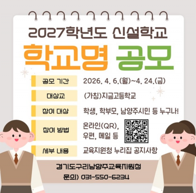 °ø¸ðµÈ Çб³¸íÀº ÃßÈÄ °æ±âµµ±¸¸®³²¾çÁÖ±³À°Áö¿øÃ» Çб³¸í¼±Á¤À§¿øÈ¸ ½ÉÀǸ¦ °ÅÃÄ ¼±Á¤µÇ¸ç °æ±âµµ¸³Çб³¼³Ä¡Á¶·Ê °³Á¤À» ÅëÇØ ÃÖÁ¾ È®Á¤µÈ´Ù.
