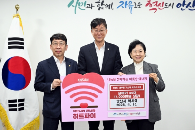 À̹α٠¾È»ê½ÃÀåÀº ¡°Áö¿ª»çȸ¸¦ À§ÇÑ ¾È»ê½Ã¾à»çȸÀÇ ²ÙÁØÇÑ °ü½É°ú µû¶æÇÑ ³ª´®¿¡ ±íÀÌ °¨»çµå¸°´Ù¡±¸ç ¡°±âʹÞÀº ¹°Ç°Àº ²À ÇÊ¿äÇÑ ºÐµé²² ¼ÒÁßÈ÷ Àü´ÞÇϰڴ١±°í ¸»Çß´Ù.