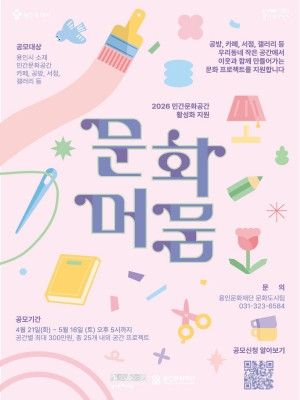 [DBSº¸µµ±¹]=¿ëÀι®ÈÀç´ÜÀº ¿À´Â 5¿ù 16ÀϱîÁö ¡®¹Î°£¹®È°ø°£ Ȱ¼ºÈ Áö¿ø»ç¾÷ <¹®È¸Ó¹³>¡¯ÀÇ Âü¿© °ø°£À» ¸ðÁýÇÑ´Ù°í ¹àÇû´Ù. Áö³ÇØ 25°³¼Ò °ø°£¿¡¼ 203ȸÀÇ ÇÁ·Î±×·¥À» ¿î¿µÇϸç 2,101¸íÀÇ ½Ã¹Î Âü¿©¸¦ À̲ø¾î³½ ¡®¹®È¸Ó¹³¡¯ »ç¾÷Àº ¿ÃÇØ Àç´Ü ÀÚü Àç¿øÀ» ¸ÅĪÇÏ¿© ÃÑ 25°³¼ÒÀÇ ¹Î°£¹®È°ø°£À» ¼±Á¤Çϰí, °ø°£º° ÃÖ´ë 300¸¸ ¿ø±îÁö ÇÁ·ÎÁ§Æ® ¿î¿µºñ¸¦ Áö¿øÇÒ ¿¹Á¤ÀÌ´Ù.