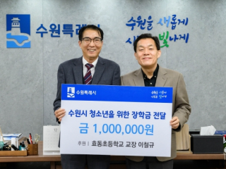 [DBSº¸µµ±¹]=ÀÌö±Ô È¿µ¿ÃʵîÇб³ ±³ÀåÀÌ 24ÀÏ ¼ö¿ø½ÃÀåÇÐÀç´Ü¿¡ ÀåÇÐ±Ý 100¸¸ ¿øÀ» ±âºÎÇß´Ù. ¼ö¿ø½Ãû¿¡¼ ¿¸° ±âºÎ±Ý Àü´Þ½Ä¿¡´Â ÀÌÀçÁØ ¼ö¡¦