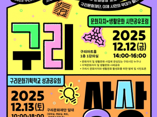 [DBSº¸µµ±¹]=(Àç)±¸¸®¹®ÈÀç´Ü(ÀÌ»çÀå ¹é°æÇö)Àº ¿À´Â 12¿ù 12ÀÏ(±Ý)ºÎÅÍ 13ÀÏ(Åä)±îÁö ¾çÀϰ£ ±¸¸®¹®ÈÀç´Ü ÀÏ´ë¿¡¼ ¡®2025 ±¸¸®½Ã ¡¦